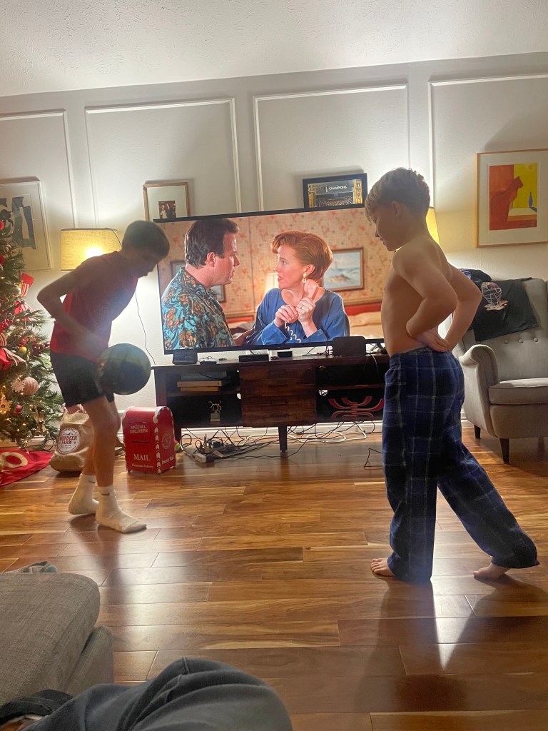 We have our annual Christmas Eve traditions, and we have to do ALL of them or the kids will be so upset. I love how nostalgic they all are! First up, the kids are allowed to touch and play with the elves. Brooks and Ellis don’t even believe anymore, but they still get excited about this!