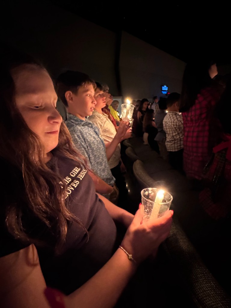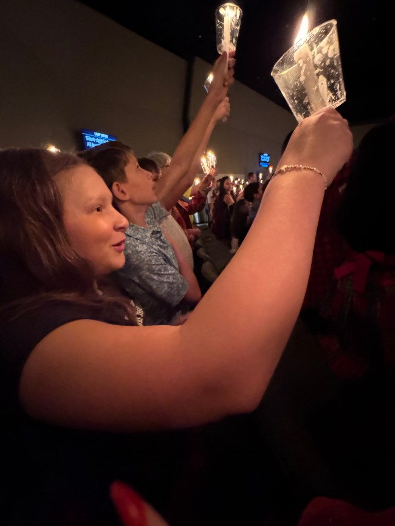 We always go to the late afternoon candlelight service!