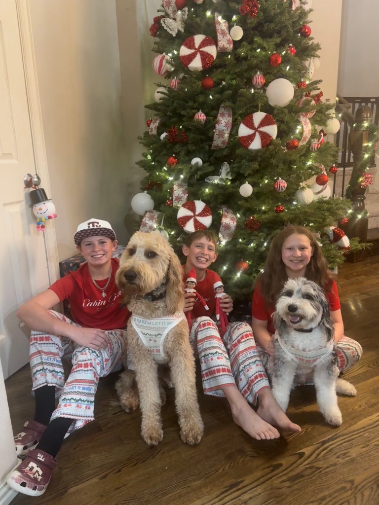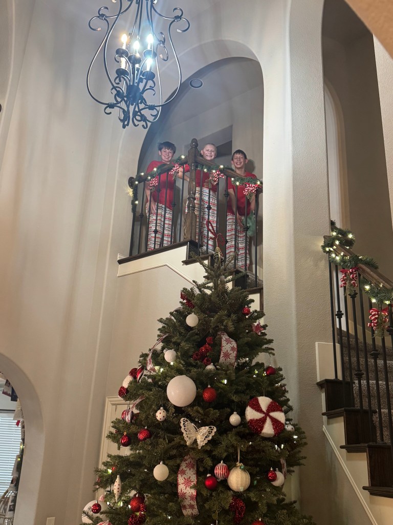 Set the milk and cookies out for Santa, read the “Night Before Christmas”, and tucked all 3 kids into Brooks’ room for the night!